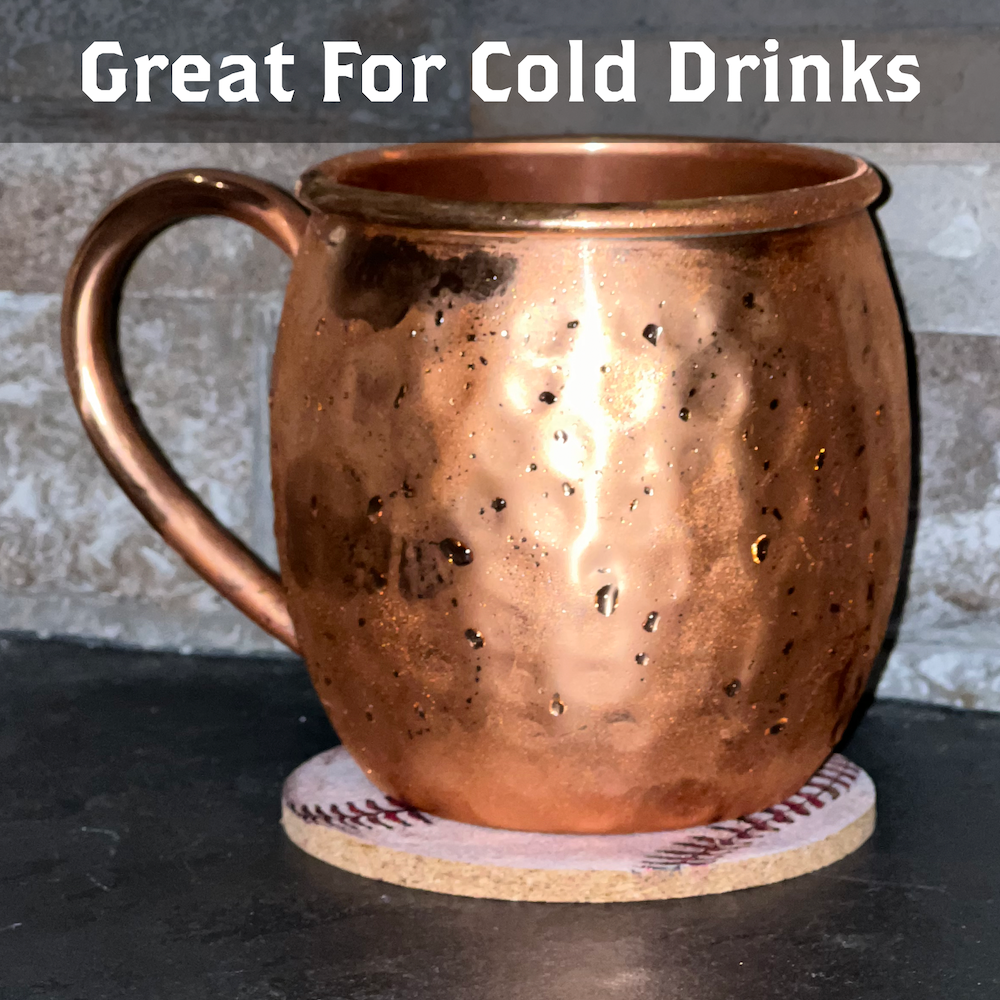 BRAND NEW ITEM! Be the first to pick up a 4-pack of cork baseball coasters from Dugout Mugs. This order comes with 4 coasters and is decorated with a UV-printed design on one side.