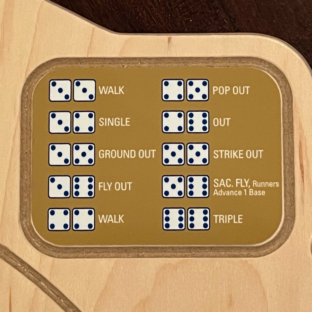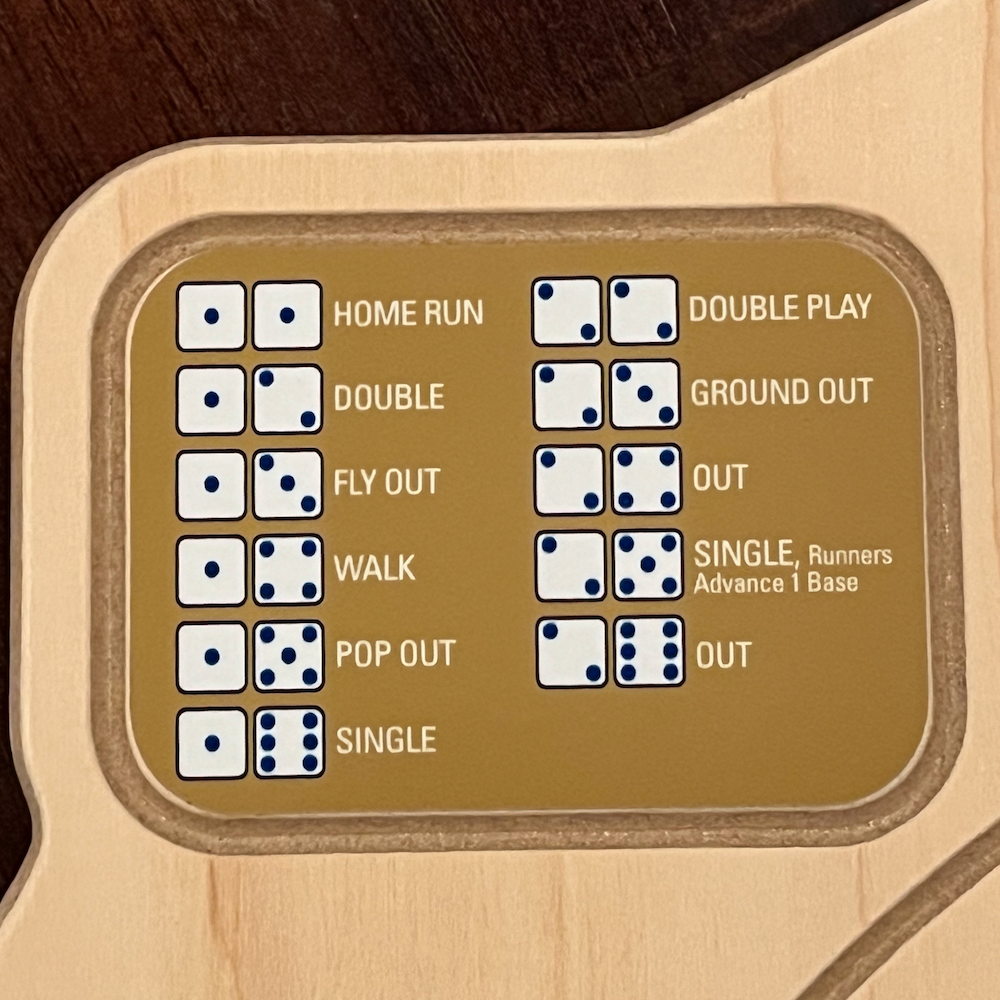 The unique baseball diamond shaped playing surface is constructed with a maple wood veneer. Includes a pair of dice, dry erase marker, five chrome pegs, four brass pegs and directions.