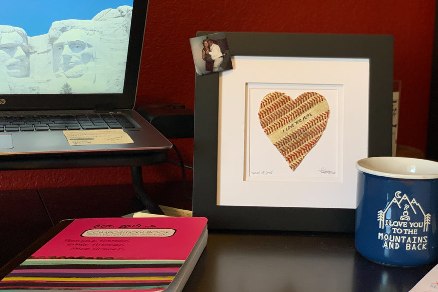 Each piece in this series is made from the seams and leather of actual used baseballs. This artwork creates the perfect gift idea for weddings, anniversaries, birthdays for the baseball fan in your life that you love!
